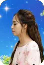 눈을 감거나 시선을 부드럽게 내립니다.